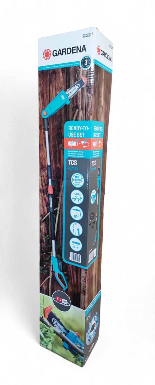 Der Akku-Teleskop-Hochentaster TCS 20/18V P4A wird als Ready-To-Use Set mit Ladegerät und einem 2,5-Ah-18V-POWER FOR ALL-Akku geliefert. Die POWER FOR ALL ALLIANCE ist eine der größten markenübergreifenden Akku-Allianzen führender Hersteller. Deren Akkus sind mit zahlreichen weiteren Geräten rund ums Haus und den Garten kompatibel – was bedeutet, dass Du nicht mehr für jedes Produkt einen kaufen musst. So sparst Du Geld und bist flexibel! Power für Deine Ideen!